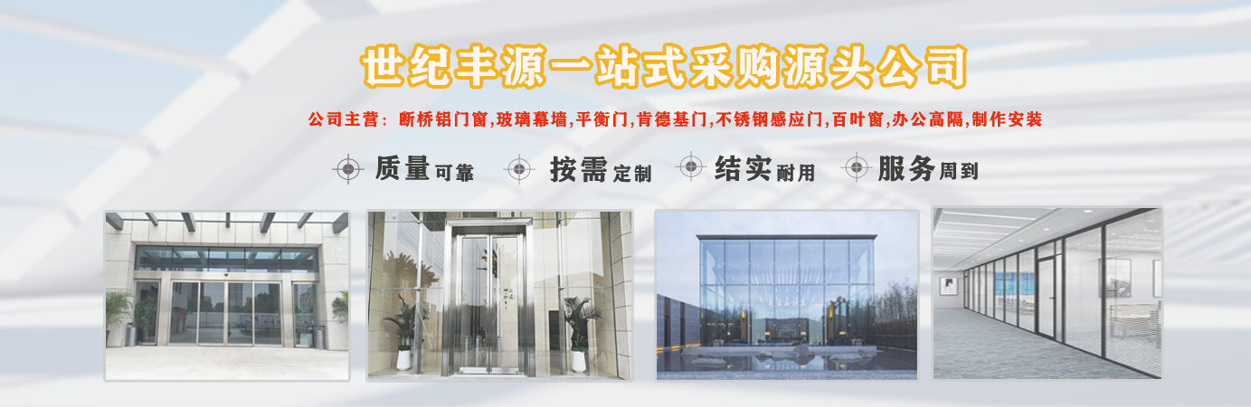 天津世紀豐源門窗有限公司從事斷橋鋁門窗,玻璃幕墻,平衡門,肯德基門,不銹鋼感應門,百葉窗,辦公高隔,制作安裝一站式訂制生產(chǎn)及配套服務(wù)等。 公司自成立以來,始終堅持以人才為本、誠信立業(yè)的經(jīng)營原則,薈萃業(yè)界精英,成熟的技術(shù)、管理方法及企業(yè)經(jīng)驗與國內(nèi)企業(yè)的具體實際相結(jié)合,為企業(yè)供給各個方面的解決方案,使企業(yè)在激烈的市場競爭中始終堅持競爭力,實現(xiàn)企業(yè)快速、穩(wěn)定地發(fā)展?! ≠|(zhì)量好、服務(wù)好、才能信譽好,公司已在諸多領(lǐng)域取得輝煌成績,愿意成為您可信賴的長期合作伙伴?! ∽屛覀償y手同行,共同實現(xiàn)“讓普通老百姓都用得上高端門窗”...